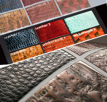 • UVインキを使用して表面の光沢感や凹凸を印刷することで、革や木目などの質感を擬似的に再現
